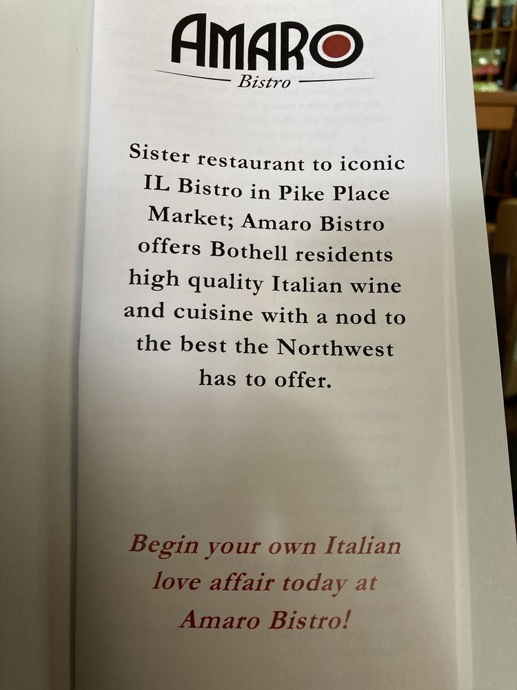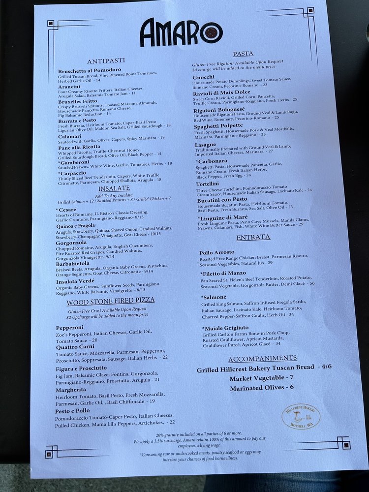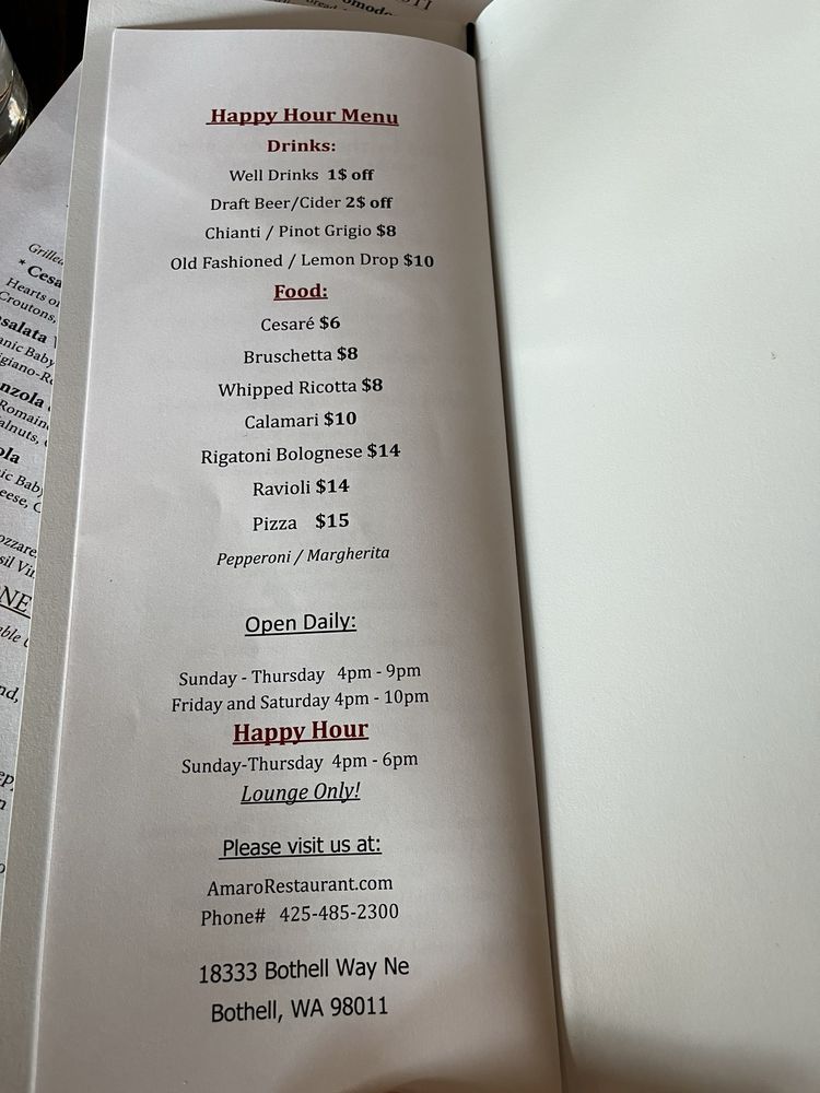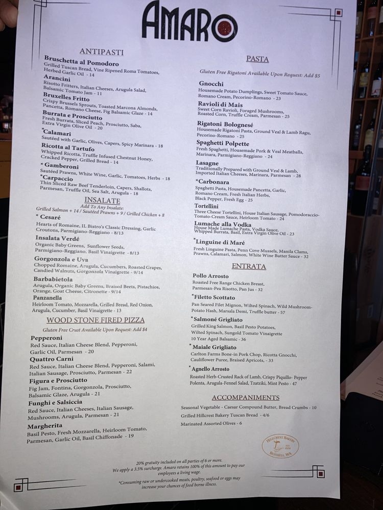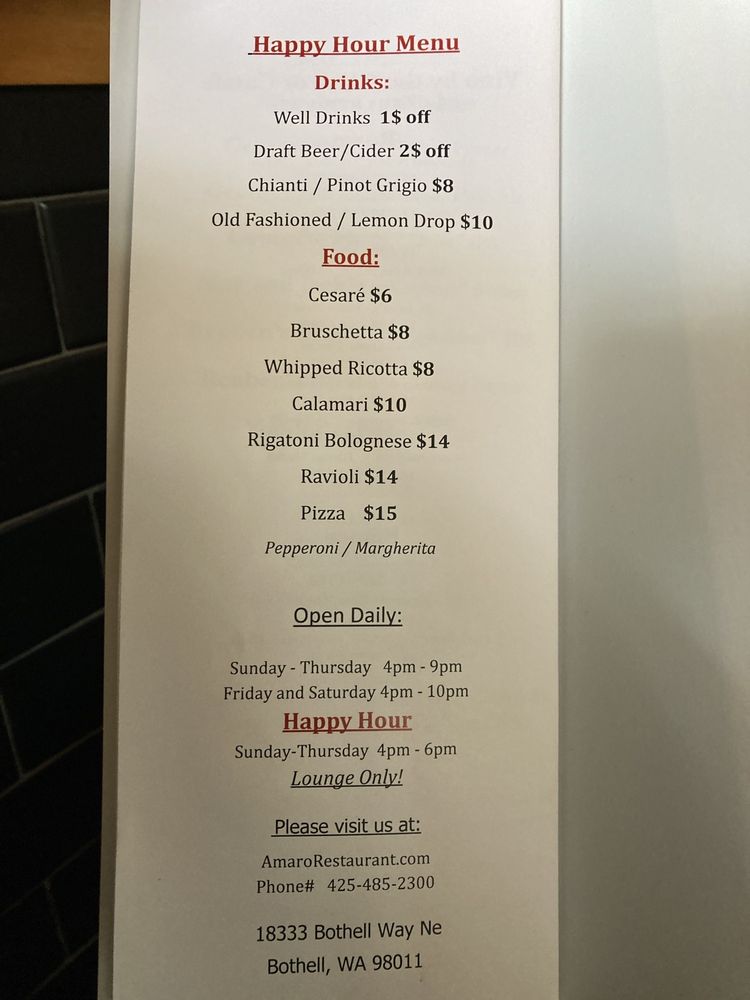 Welcome to Amaro Bistro, the contemporary gem nestled in downtown Bothell, where Italian pizza takes center stage. This trendy spot combines a vibrant atmosphere with warm service, making it perfect for casual gatherings and family dinners alike. The menu features a tantalizing array of dishes, from hearty appetizers like the melt-in-your-mouth burrata and exquisite carpaccio to unique pizzas, such as the flavorful fig and pear creation that many rave about.